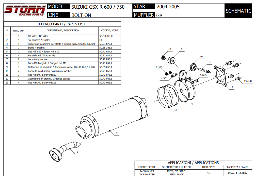 Storm By Mivv GP RVS Black Bolt-On Einddemper Met E-keur SUZUKI GSX-R 750 2004 - 2005