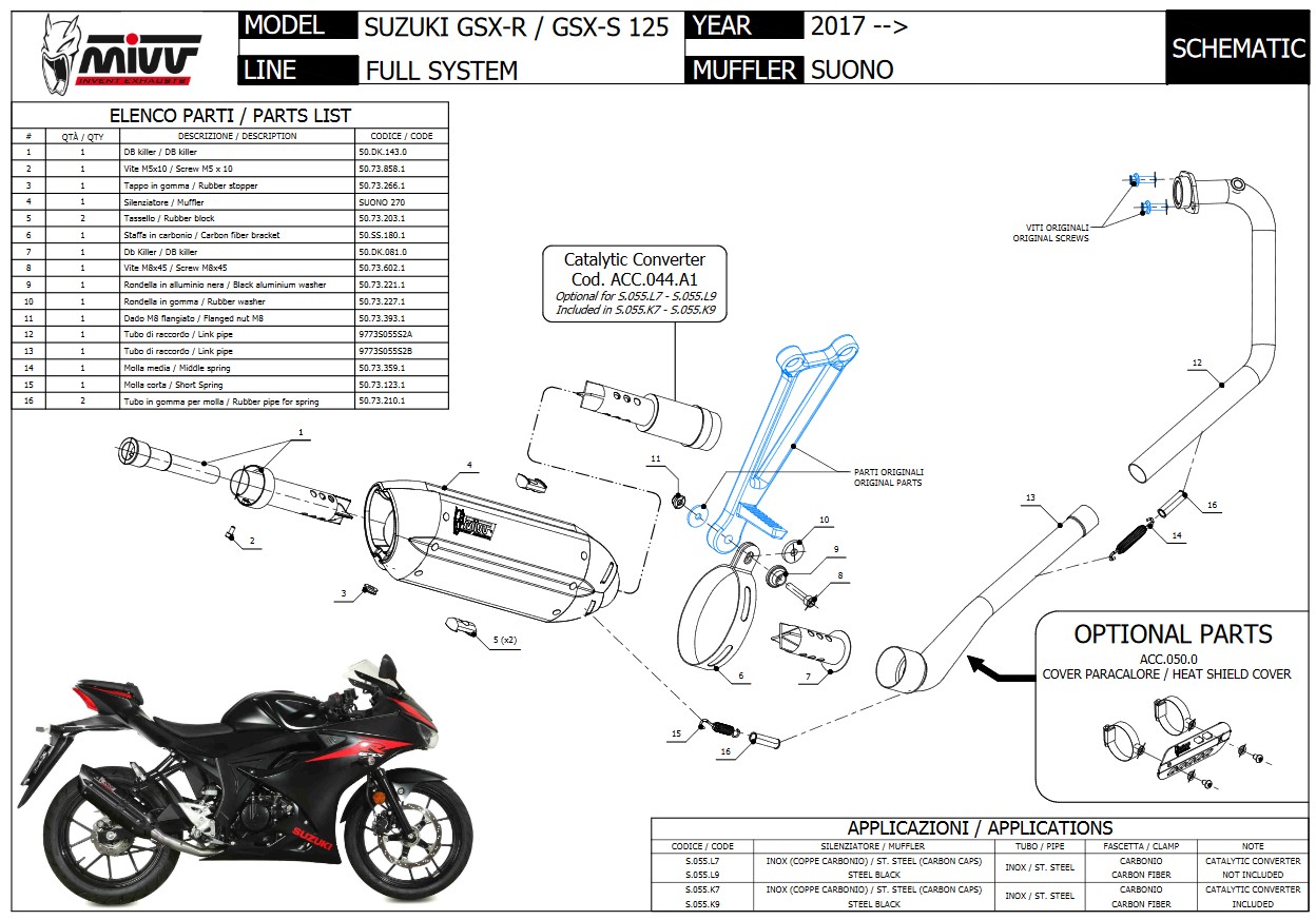 Mivv Suono RVS Black Compleet 1in1 Uitlaatsysteem met E-keur Suzuki GSX-S 125 2017 > 2020