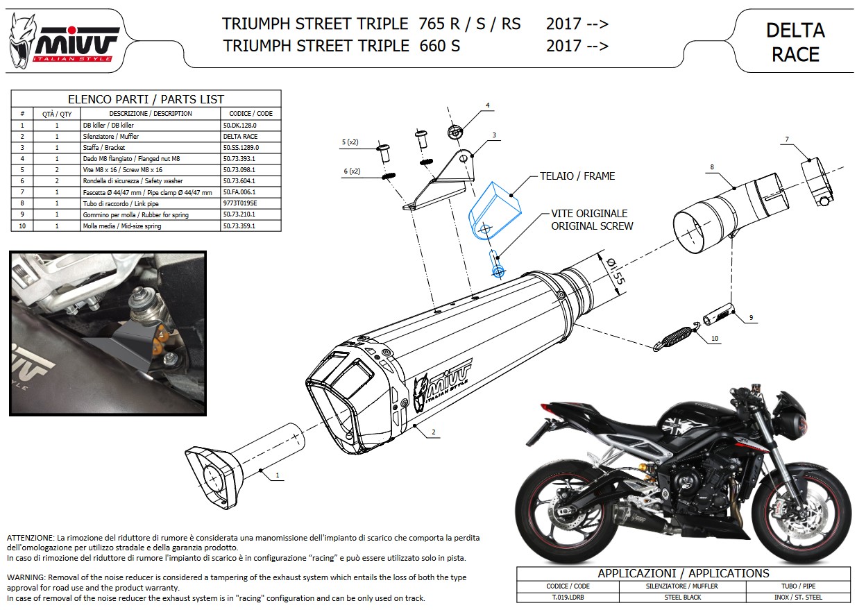 Mivv Delta Race RVS Black Einddemper met E-keur Triumph Street Triple 765 R / S / RS 2017 > 2022