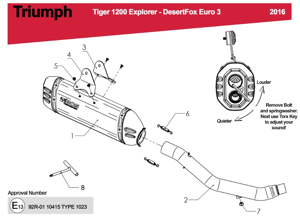 BOS Desert Fox RVS Matt Einddemper met E-keur Triumph Tiger 1200 Explorer 2016
