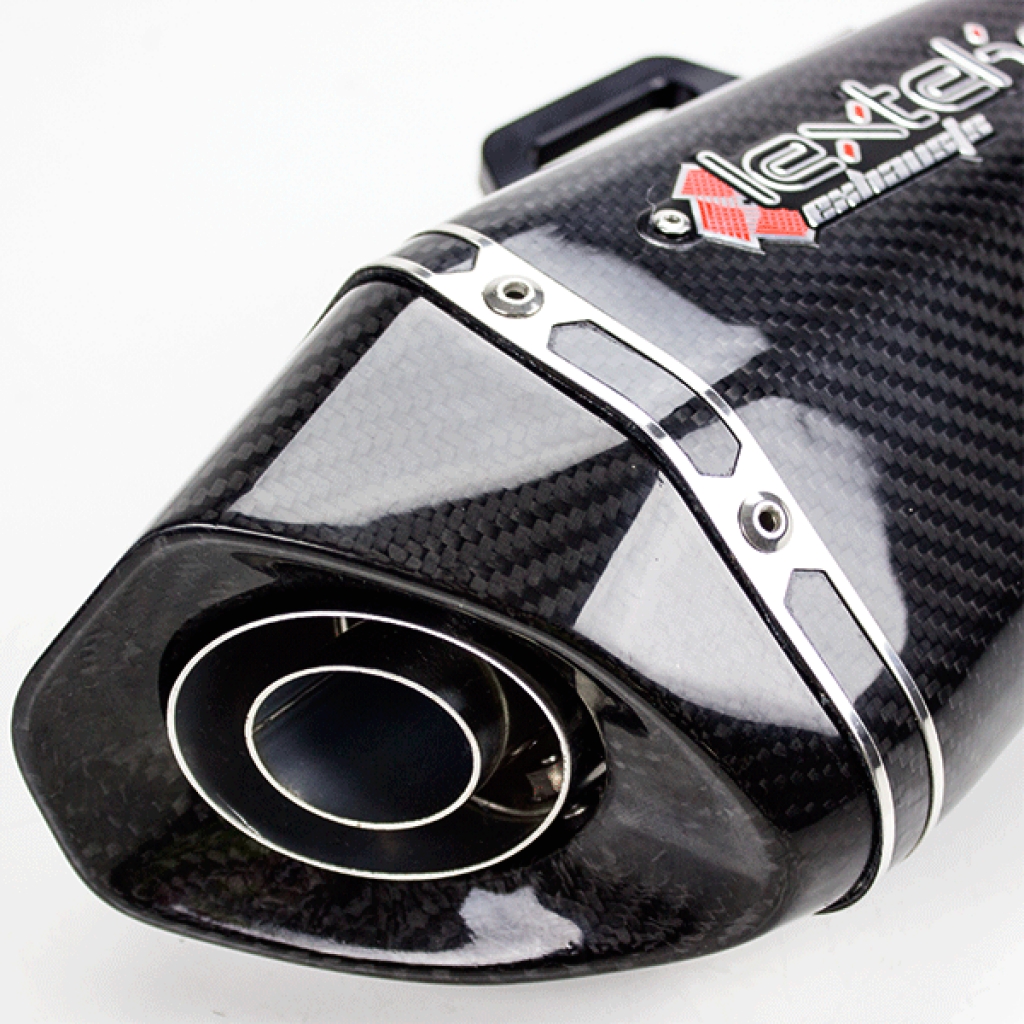 - Universele Carbon Einddemper met een 51mm aansluiting (voor motoren met een linkpipe diameter / aansluitingsdiameter van 51mm)