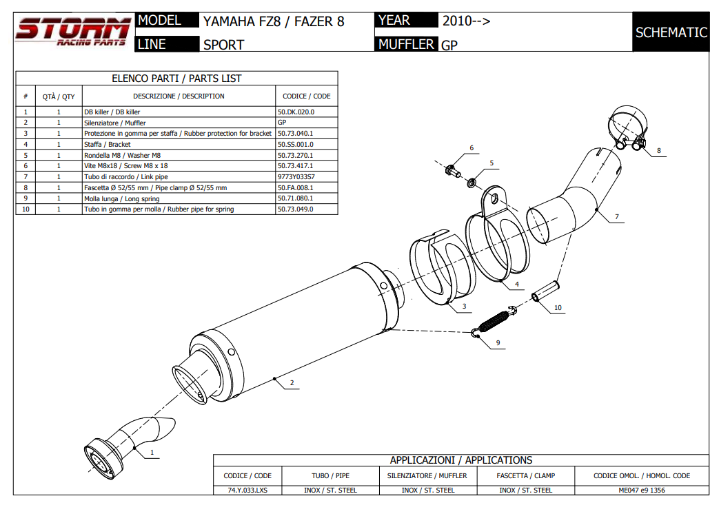 Storm By Mivv GP RVS Black Slip-On Einddemper Met E-keur YAMAHA FZ8 / FAZER 2010 - 2016