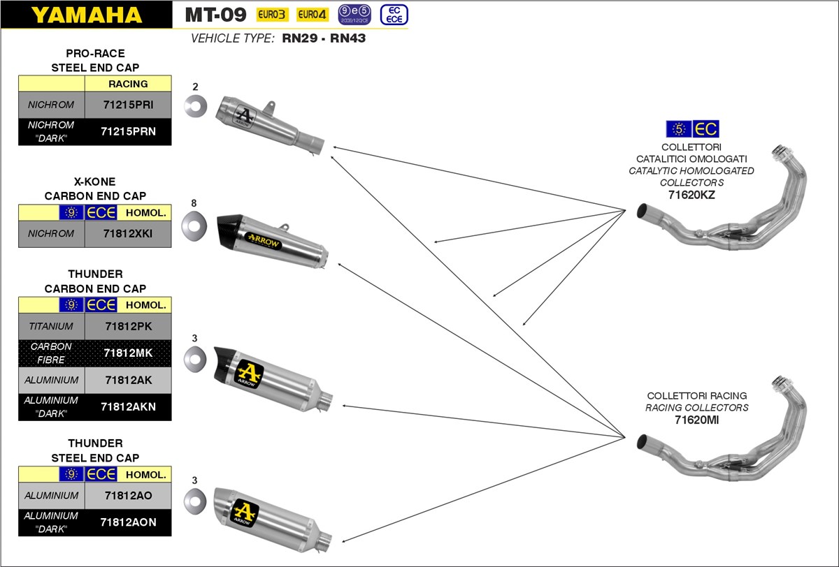 Alle afbeeldingen dienen ter illustratie. De afbeeldingen van de betreffende Arrow uitlaat in de schematische tekening zijn altijd leidend m.b.t. het artikel dat geleverd wordt.