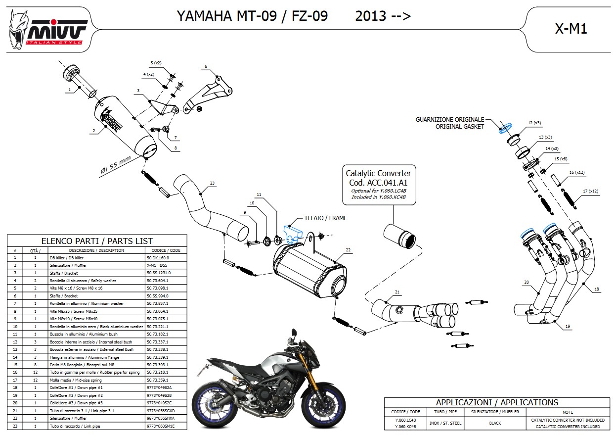 Mivv X-M1 RVS Black Compleet 3in1 Uitlaatsysteem met E-keur Yamaha MT-09 2013 > 2020