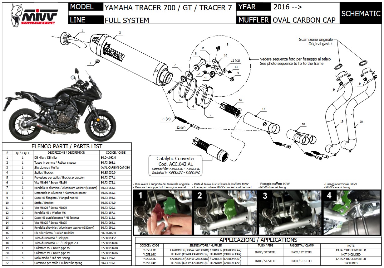 Mivv Oval Titanium met Carbon Endcap Compleet Uitlaatsysteem met E-keur Yamaha Tracer 7 / GT 2021 > 2024