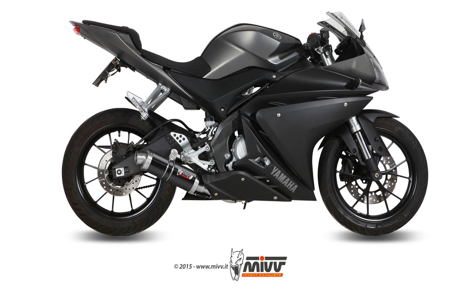 Mivv GP RVS Black Compleet Uitlaatsysteem met E-keur Yamaha YZF R125 2014 > 2018
