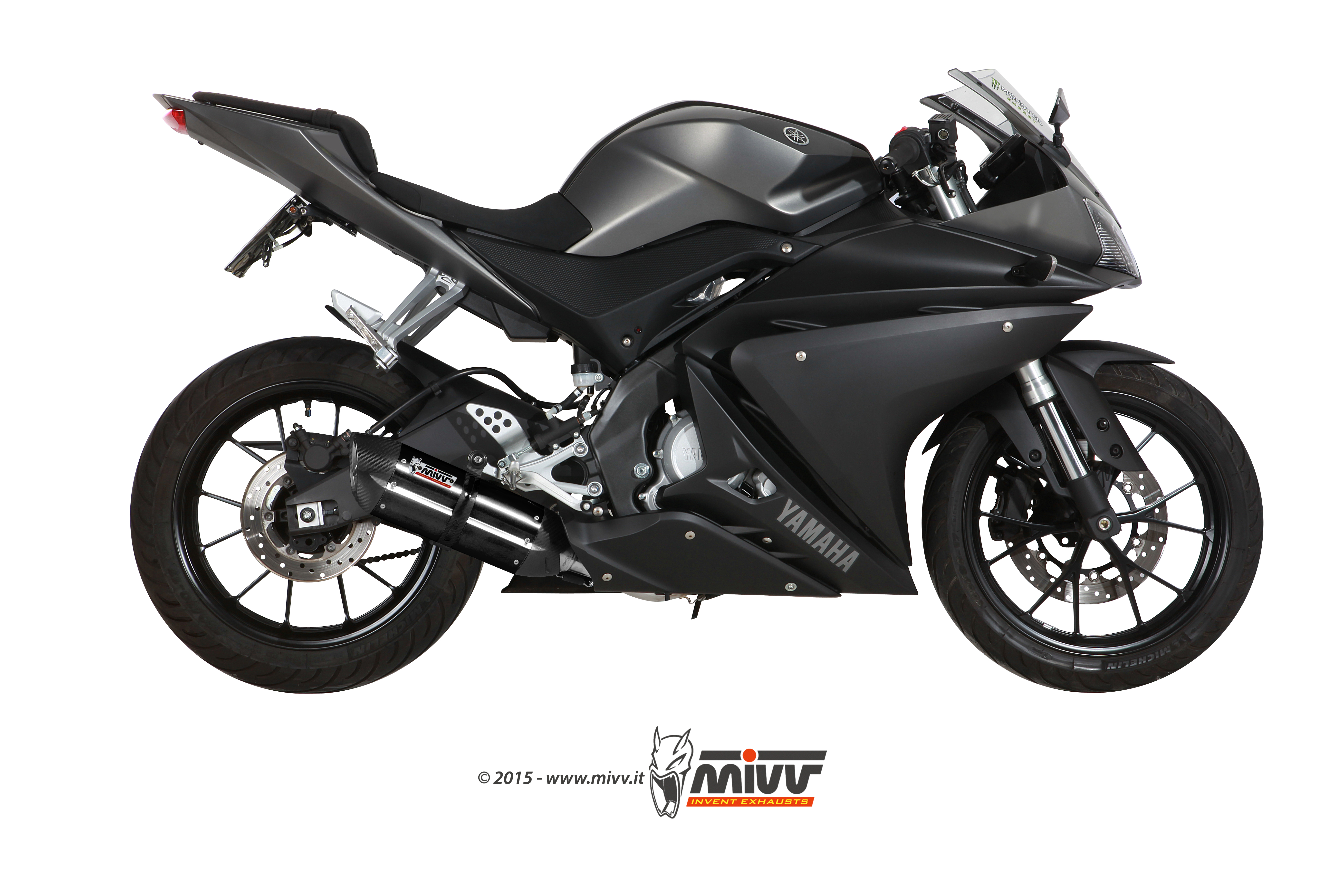 Mivv Suono RVS Black Compleet 1in1 Uitlaatsysteem met E-keur Yamaha YZF R125 2014 > 2018