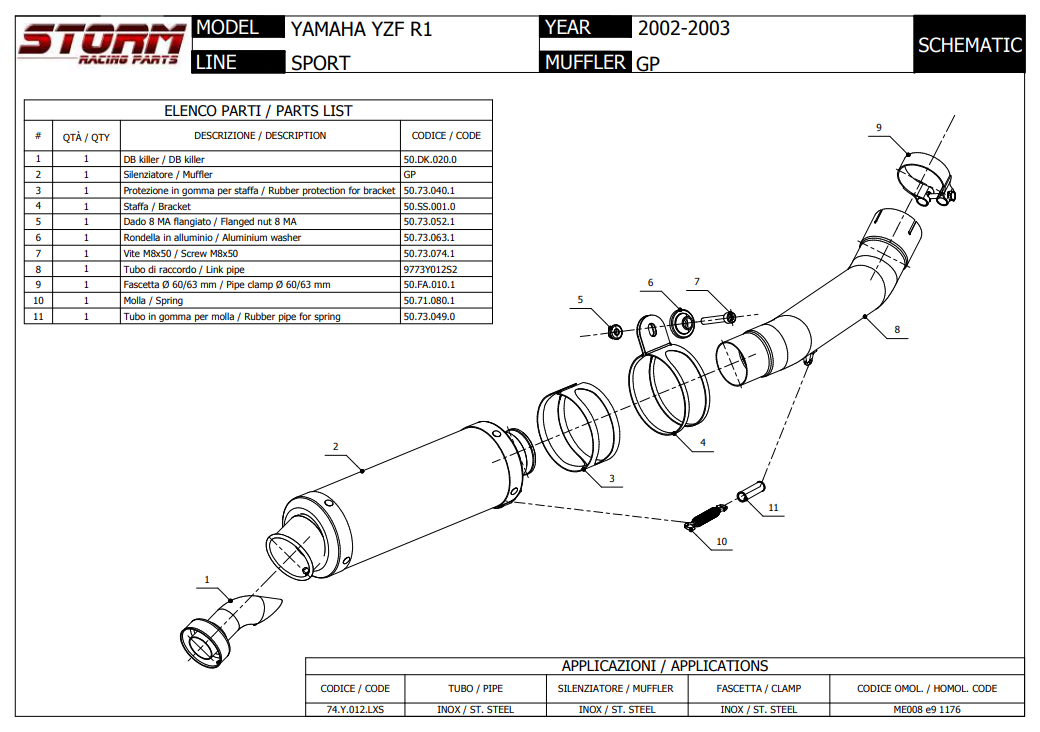 Storm By Mivv GP RVS Black Slip-On Einddemper Met E-keur YAMAHA YZF 1000 R1 2002 - 2003