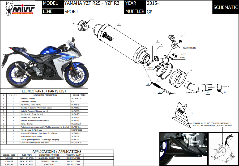 Mivv GP RVS Black Slip-on Einddemper met E-keur Yamaha YZF R25 2015 > 2023